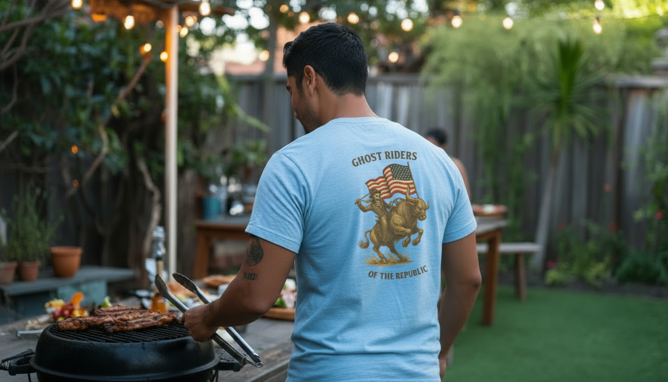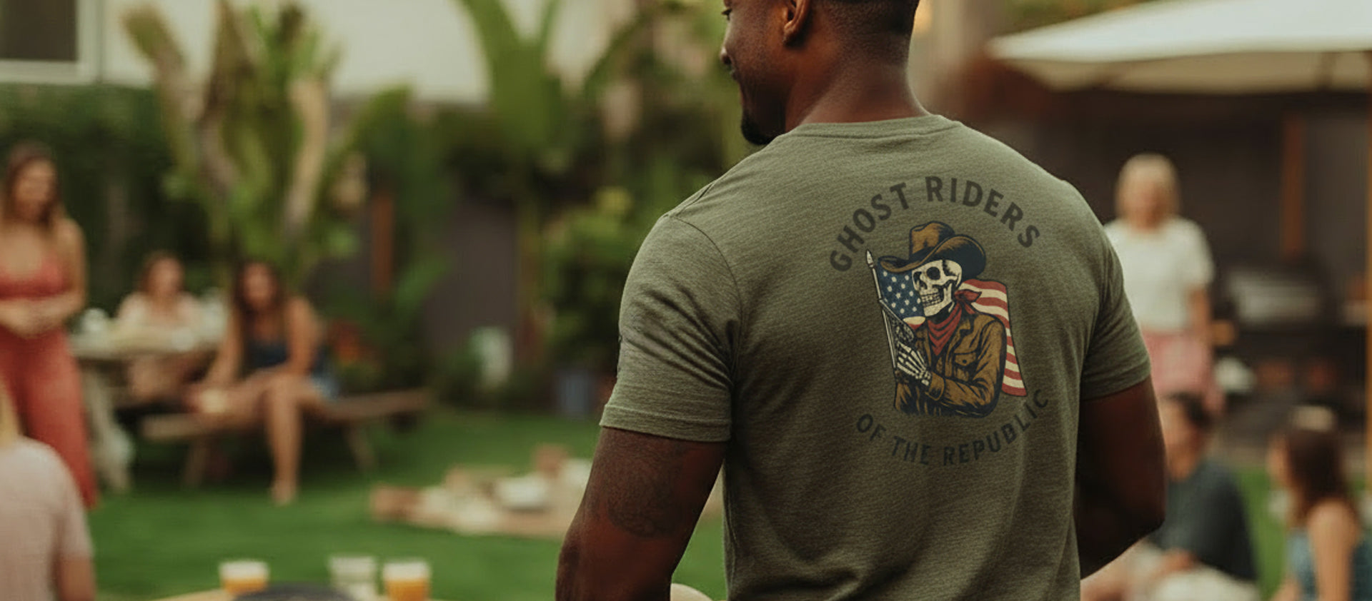 Ghost Riders of the Republic Cowboy Skeleton T-Shirt – Patriotic Western Graphic Tee