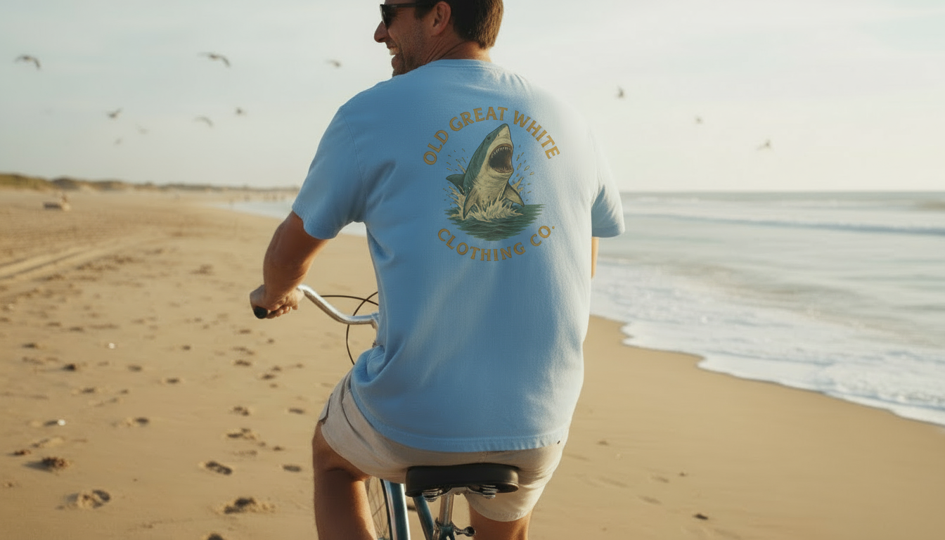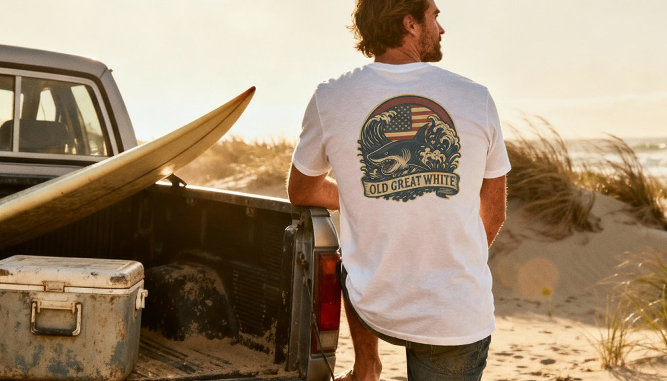 Alpha Shark Rider Tee – Old Great White Power Surf Graphic Classic Jersey Short Sleeve Tee