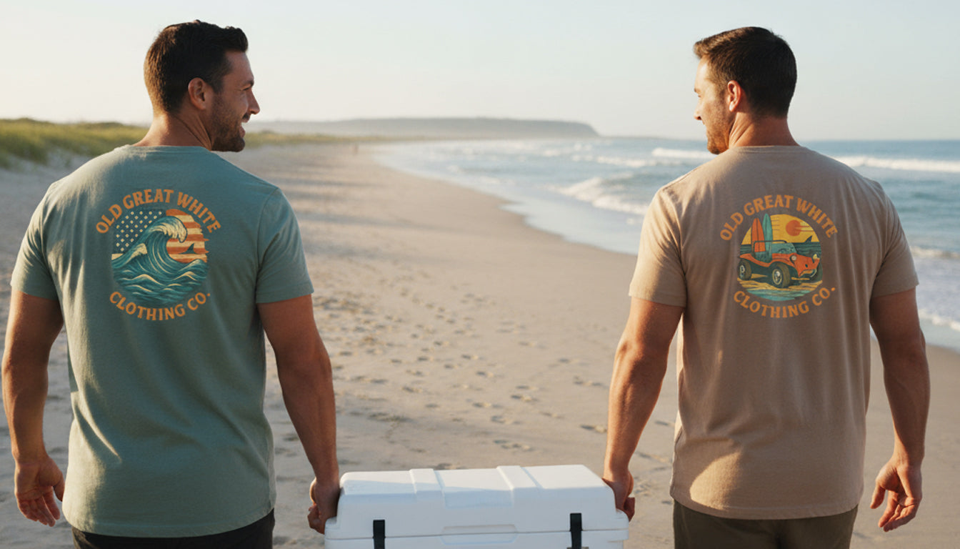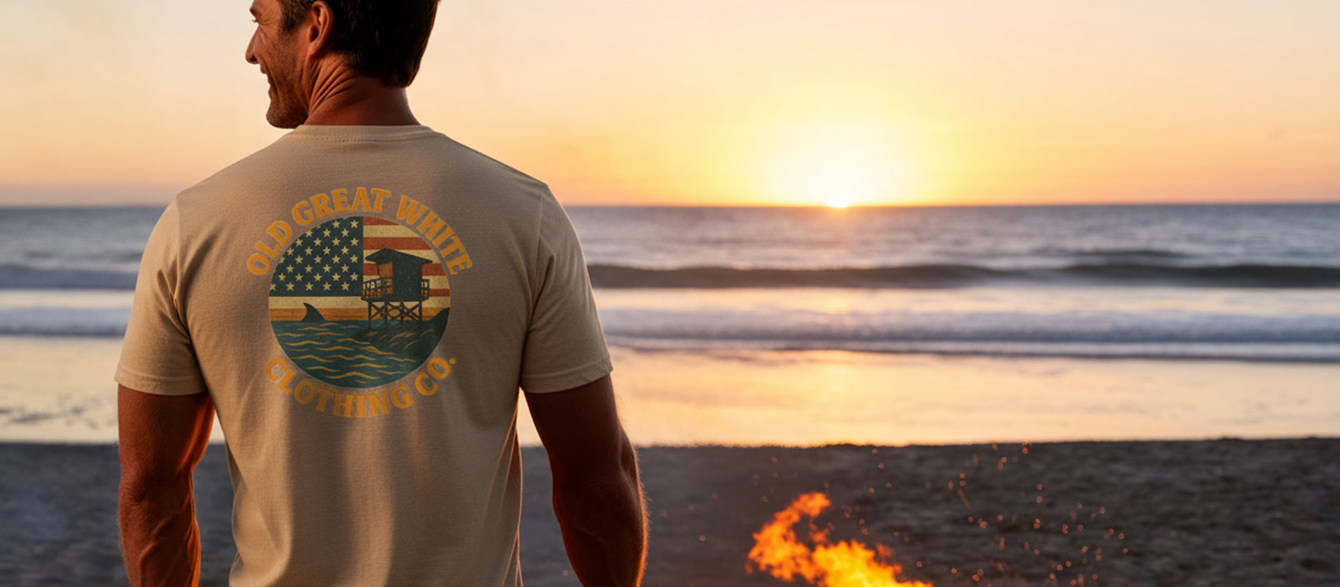 American Shoreline Tee – Lifeguard Tower & Shark Fin Graphic Classic Jersey Short Sleeve Tee