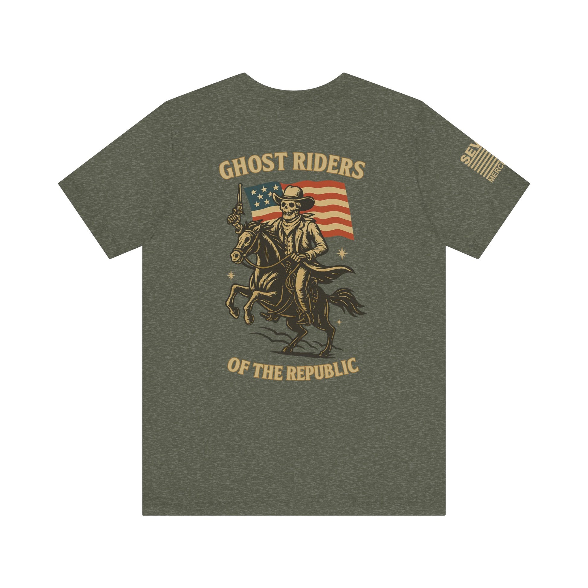 Ghost Riders of the Republic Horseback Skeleton Cowboy T-Shirt – Patriotic Wild West Graphic Tee