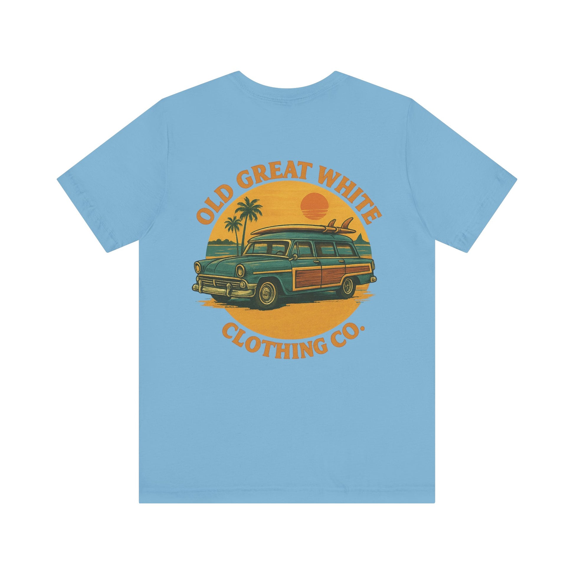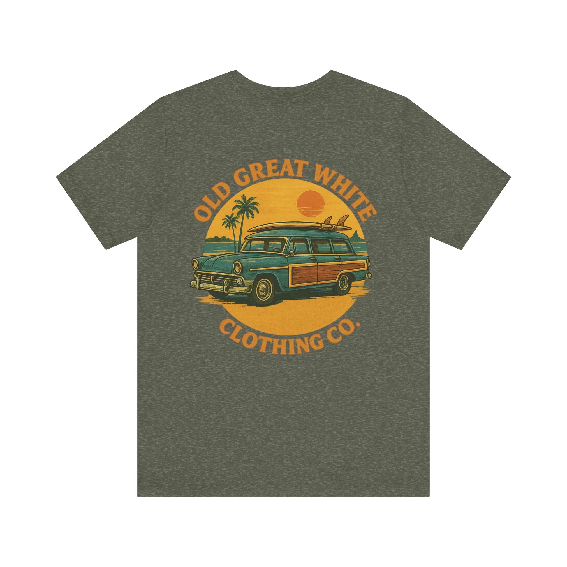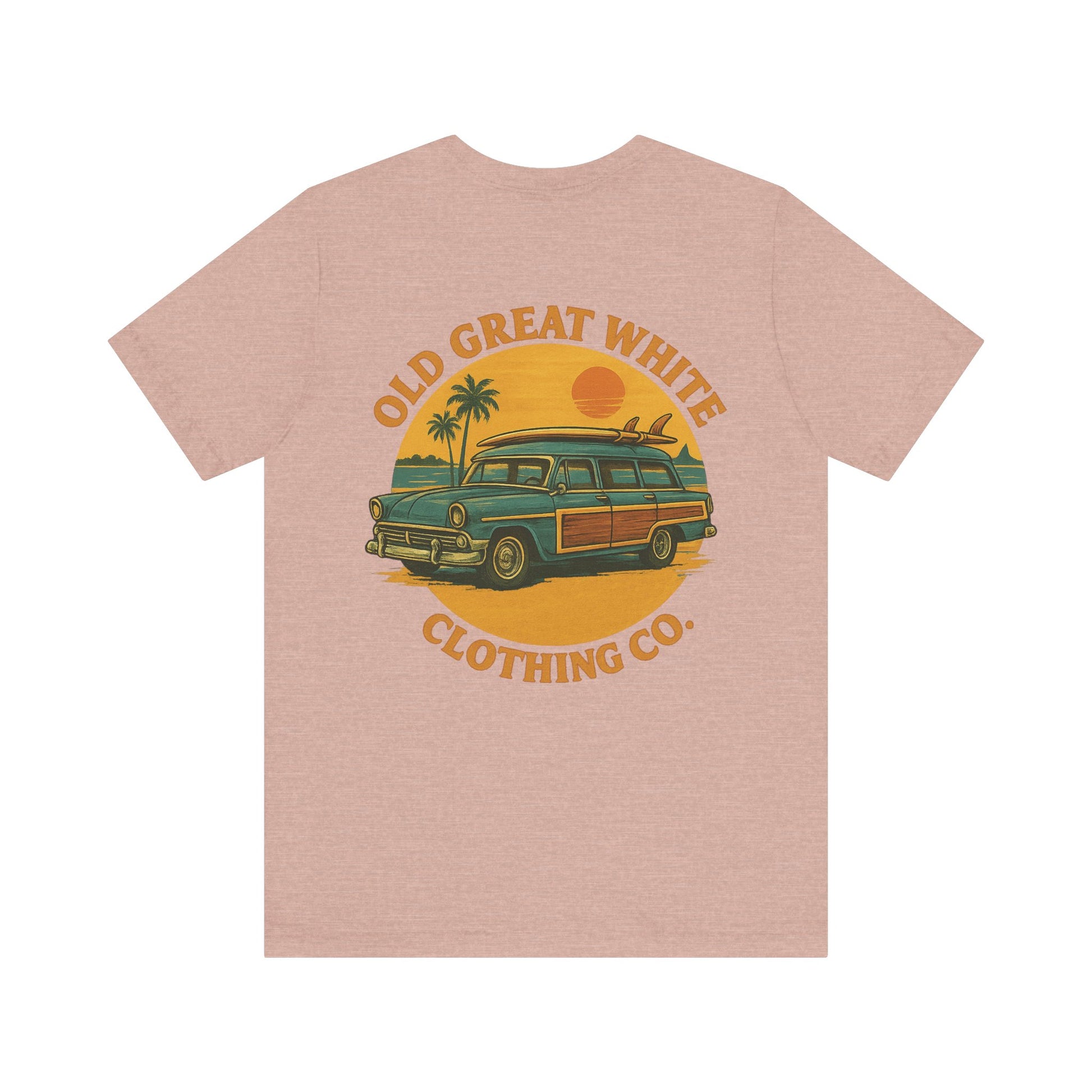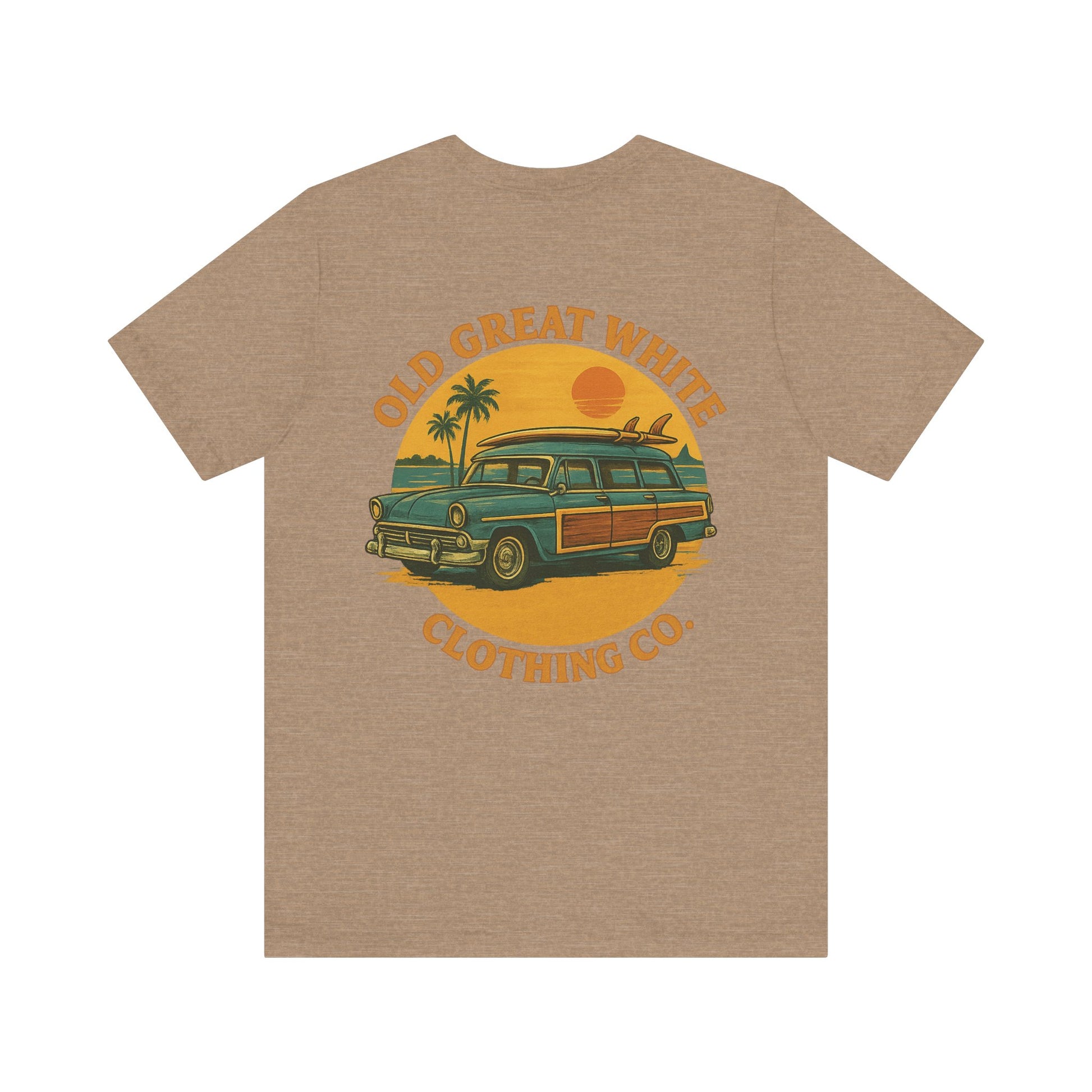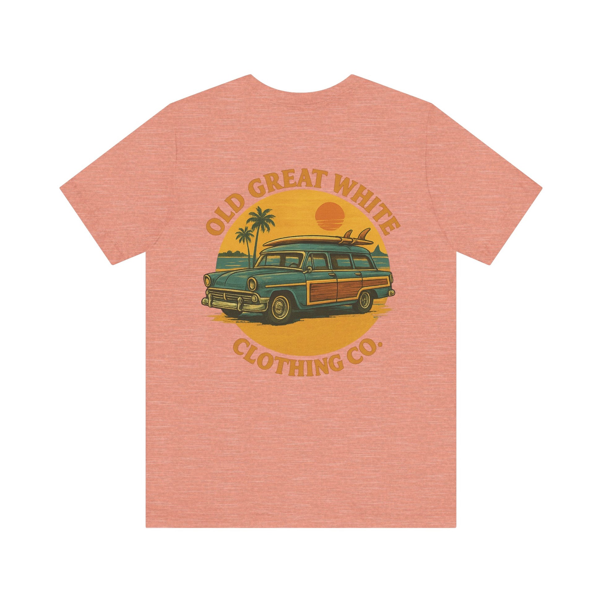 Golden Hour Surf Wagon Tee – Retro Woodie and Sunset Style Classic Jersey Short Sleeve Tee