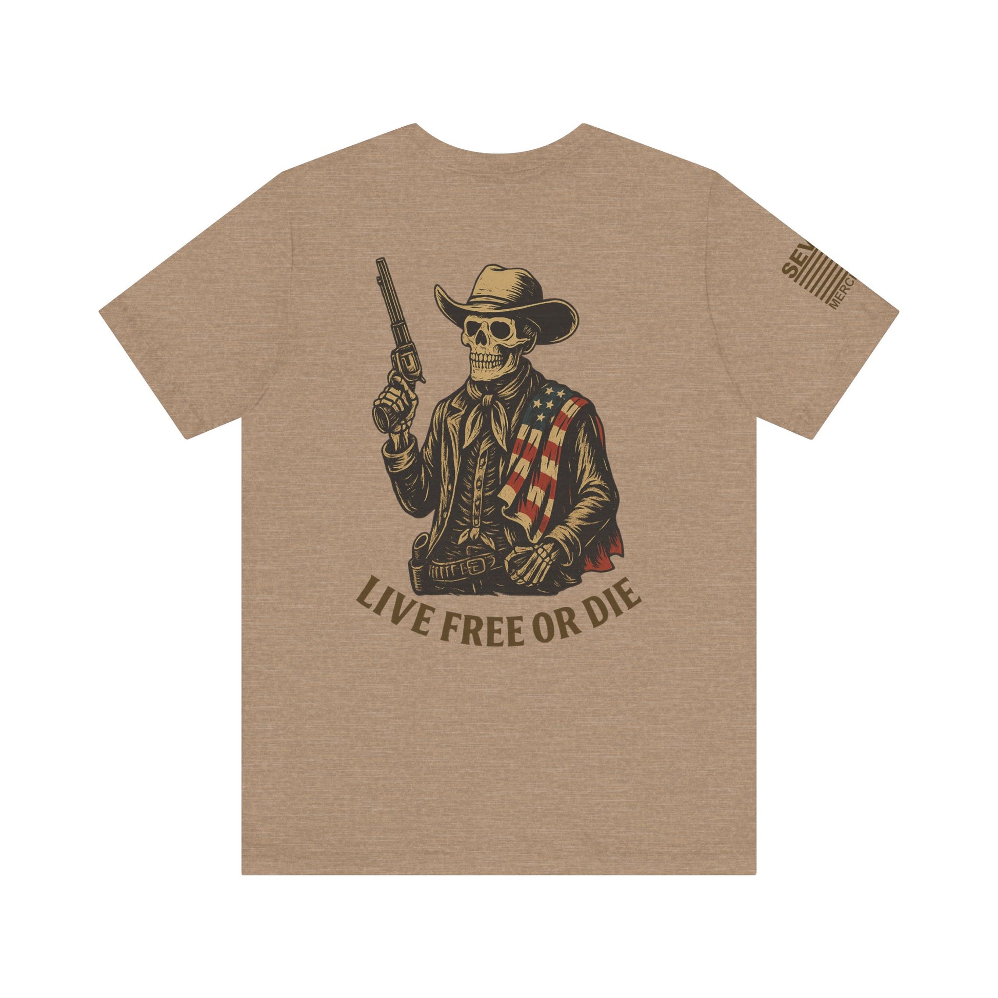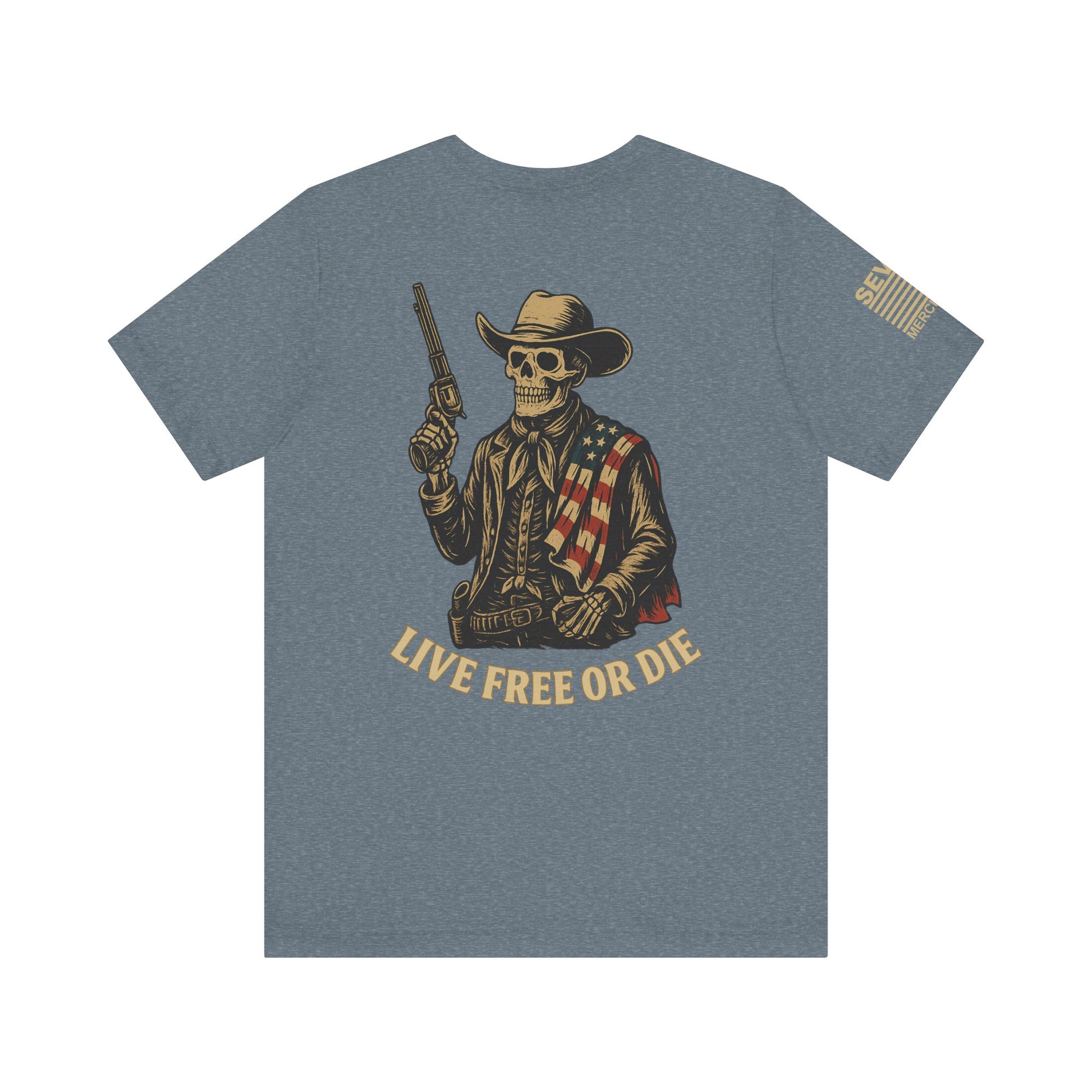 Live Free or Die Skeleton Cowboy T-Shirt – American Flag Western Graphic Tee