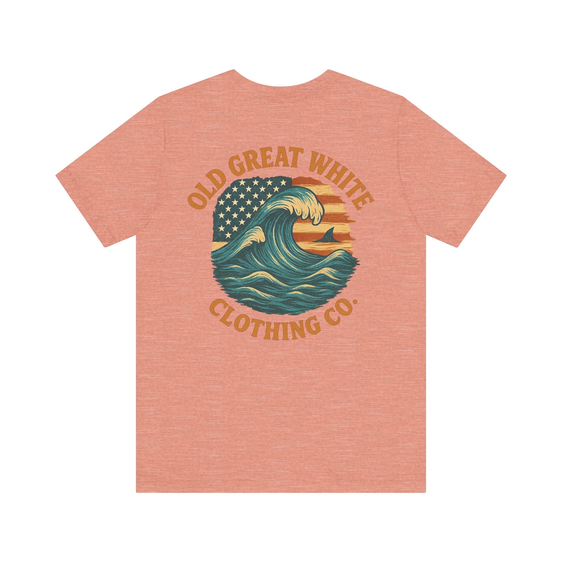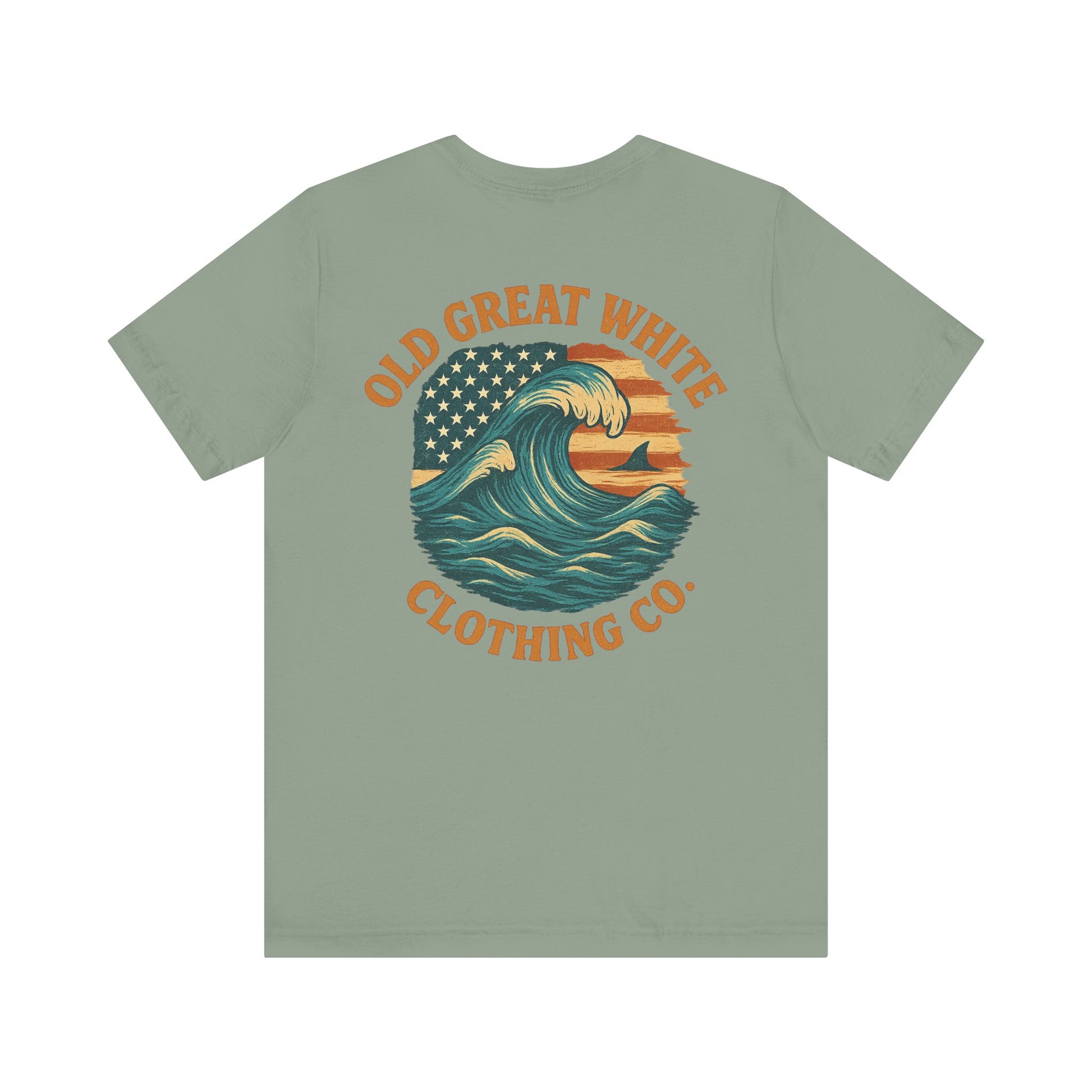 Old Great White American Wave Tee – Retro Ocean Graphic Jersey Short Sleeve Tee