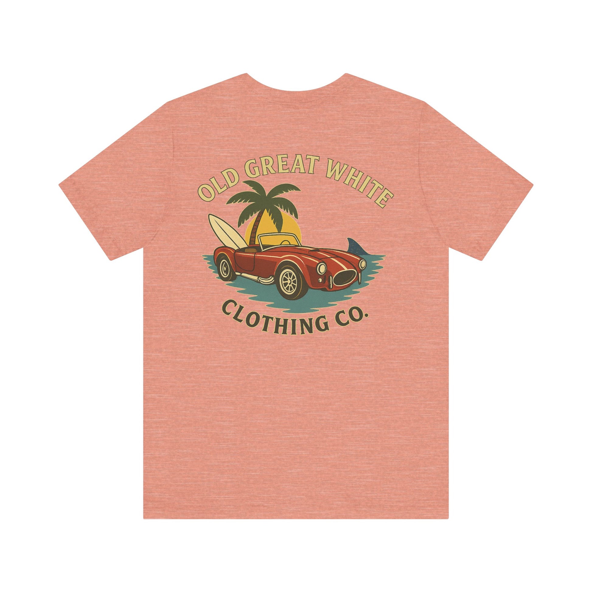 Vintage Convertible & Surfboard T-Shirt – Coastal Cruiser Style Jersey Short Sleeve Tee
