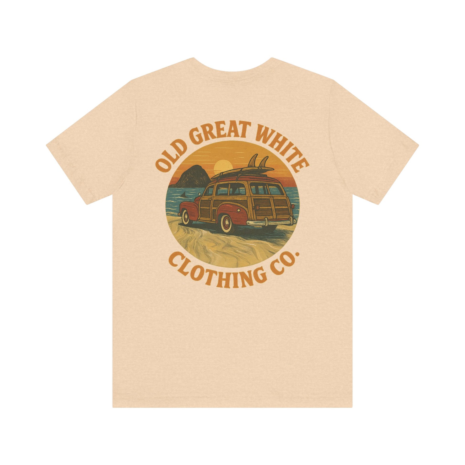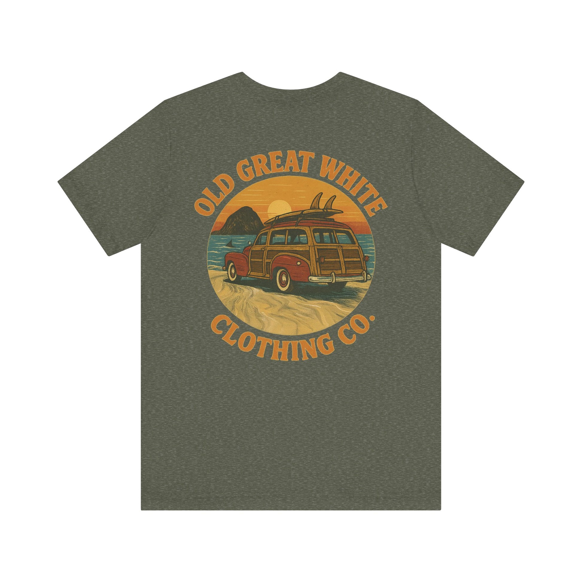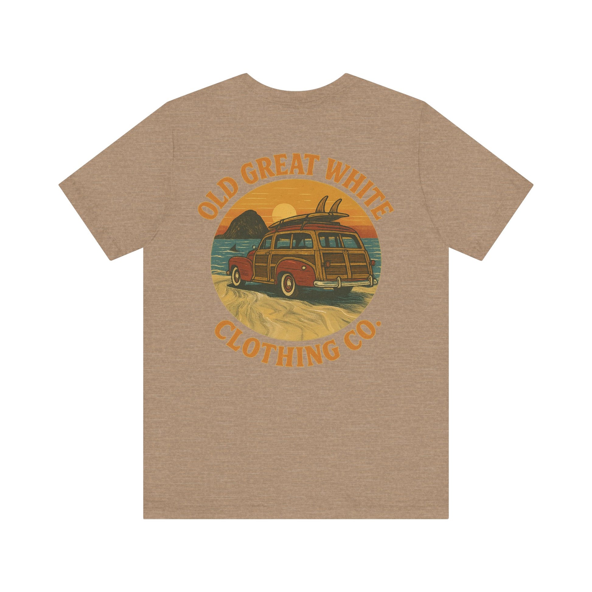 Vintage Woody Surf Wagon Tee - Old Great White Sunset Vibes Classic Jersey Short Sleeve Tee